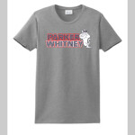 Wave Division logo . Available in youth, men's and ladies sizing. Name and number can be added on the back for an additional fee. 6-ounce, 100% cotton (preshrunk) Seamless double-needle collar Double-needle sleeves and hem Taped neck and shoulders Sports Grey 90/10 cotton/poly.