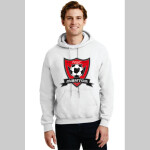 Gildan Hoodie with Wave Division Logo. Available in youth and adult sizes. Name and Number can be added on the back for an additional fee. 8-ounce, 50/50 cotton/poly; no-pill Air Jet Yarn Double-needle stitching Double-lined hood with dyed-to-match drawcord adult only Set-in sleeves Rib knit cuffs and waistband with spandex Front pouch pocket
